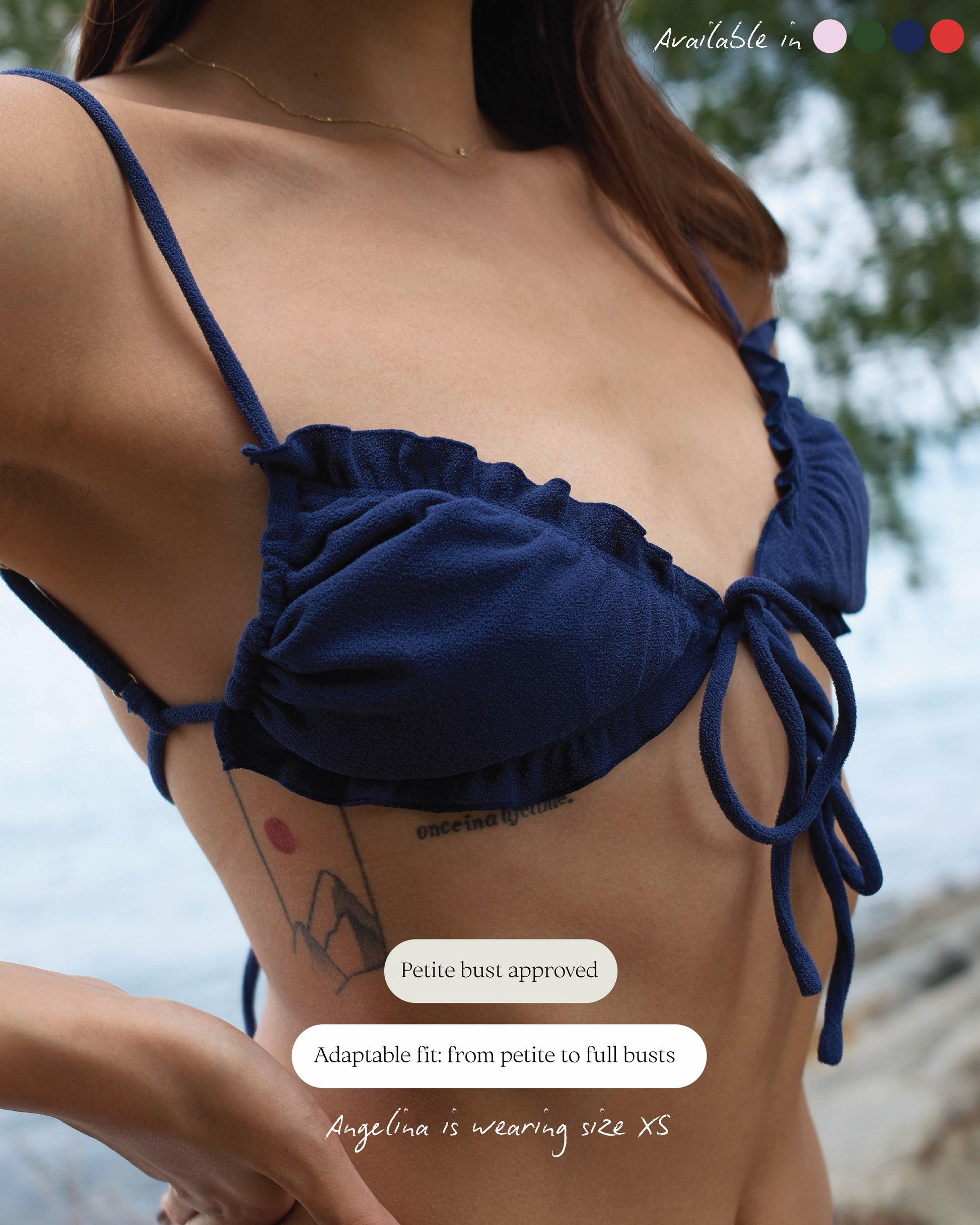 Our bikini tops are double-lined with two premium fabrics, each chosen for its unique benefits