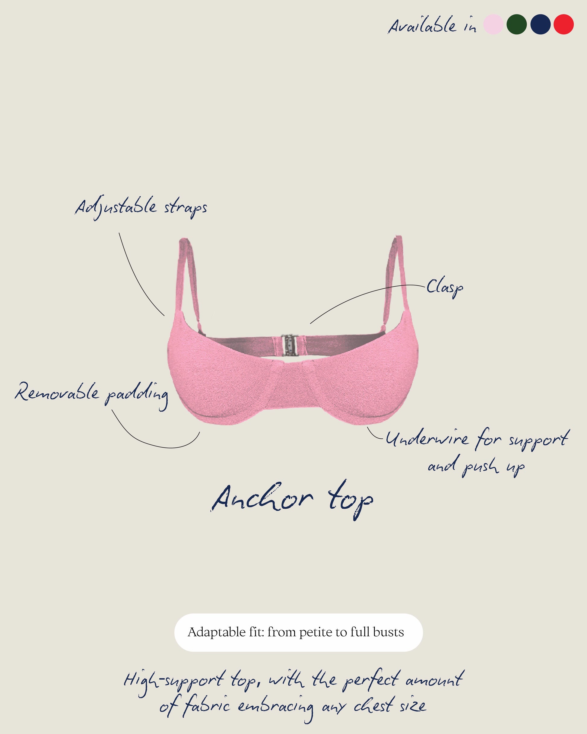 Our bikini tops are double-lined with two premium fabrics, each chosen for its unique benefits