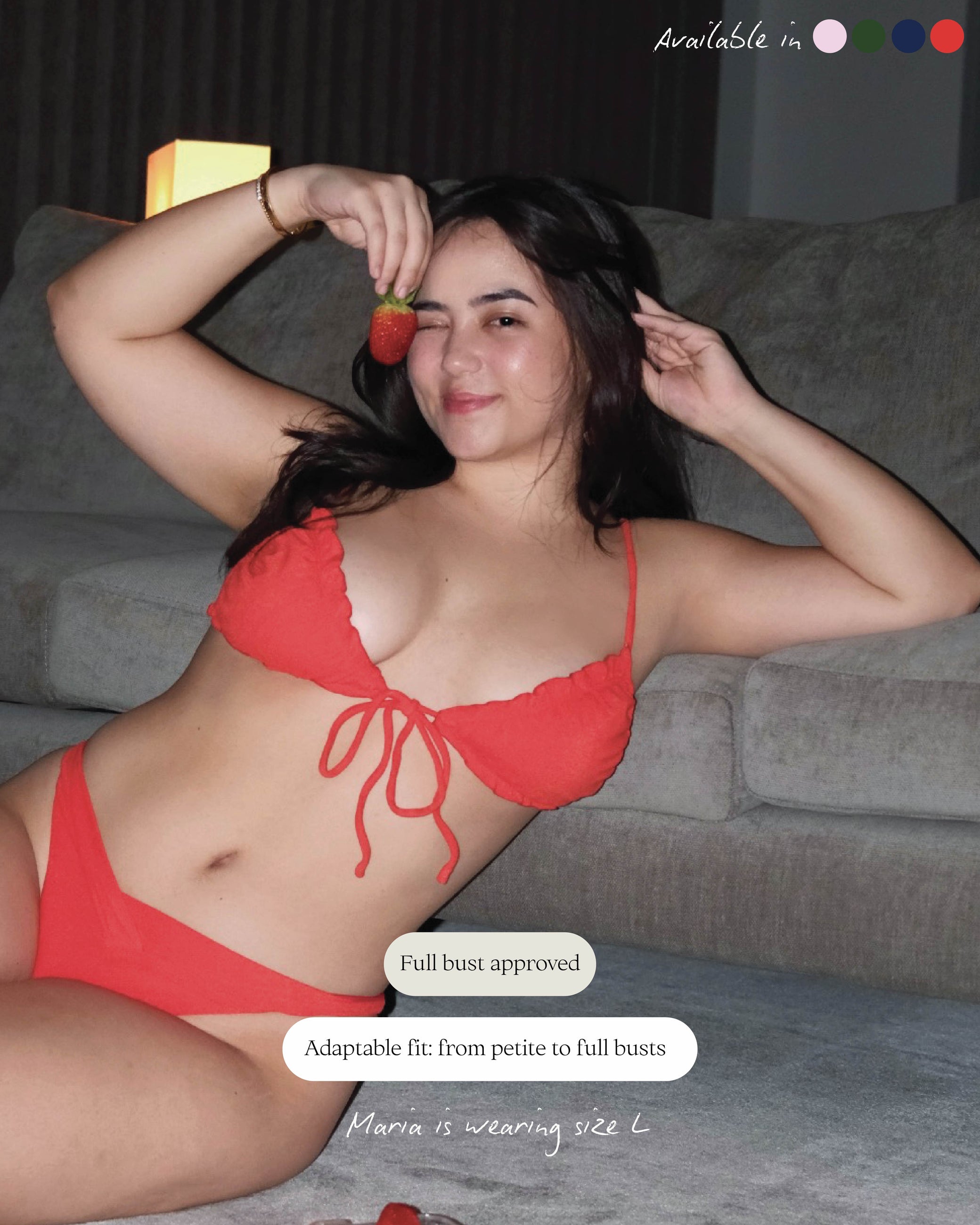 Our bikini tops are double-lined with two premium fabrics, each chosen for its unique benefits